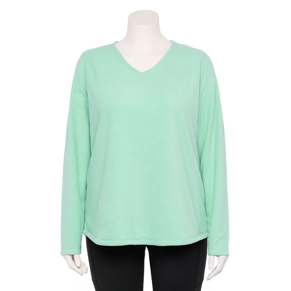 This Tek Gear women’s microfleece v-neck top is a cozy., wardrobe must-have.
